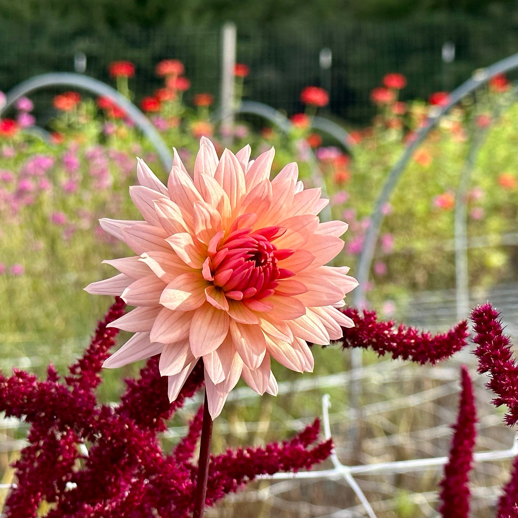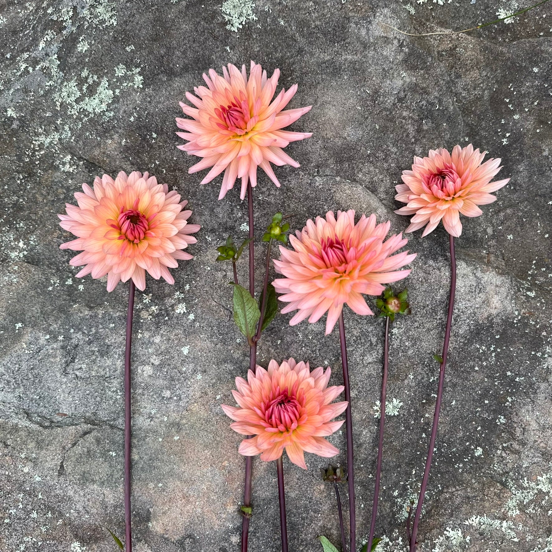 Pale peachy salmon 4" semi-cactus blooms on long, strong stems